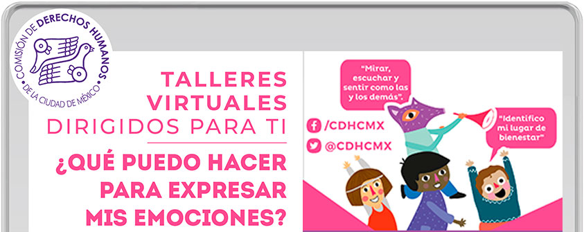 La Comisión de Derechos Humanos de la Ciudad de México (CDHCM), promueve una Invitación para participar en los talleres virtuales "Herramientas para expresar emociones".
